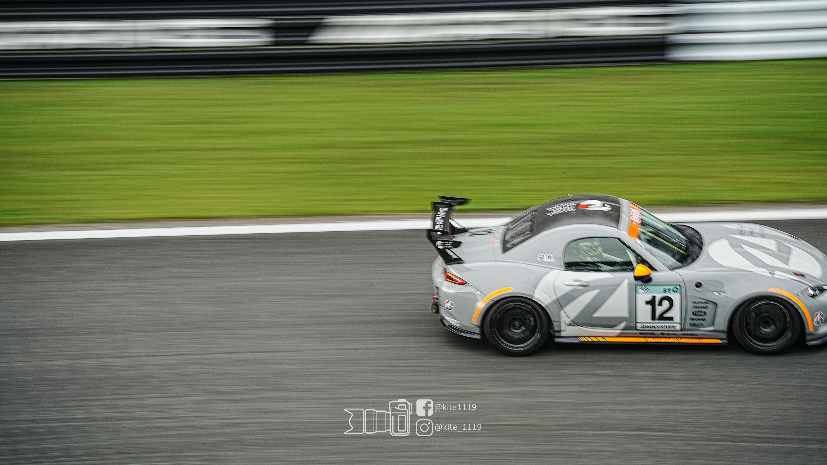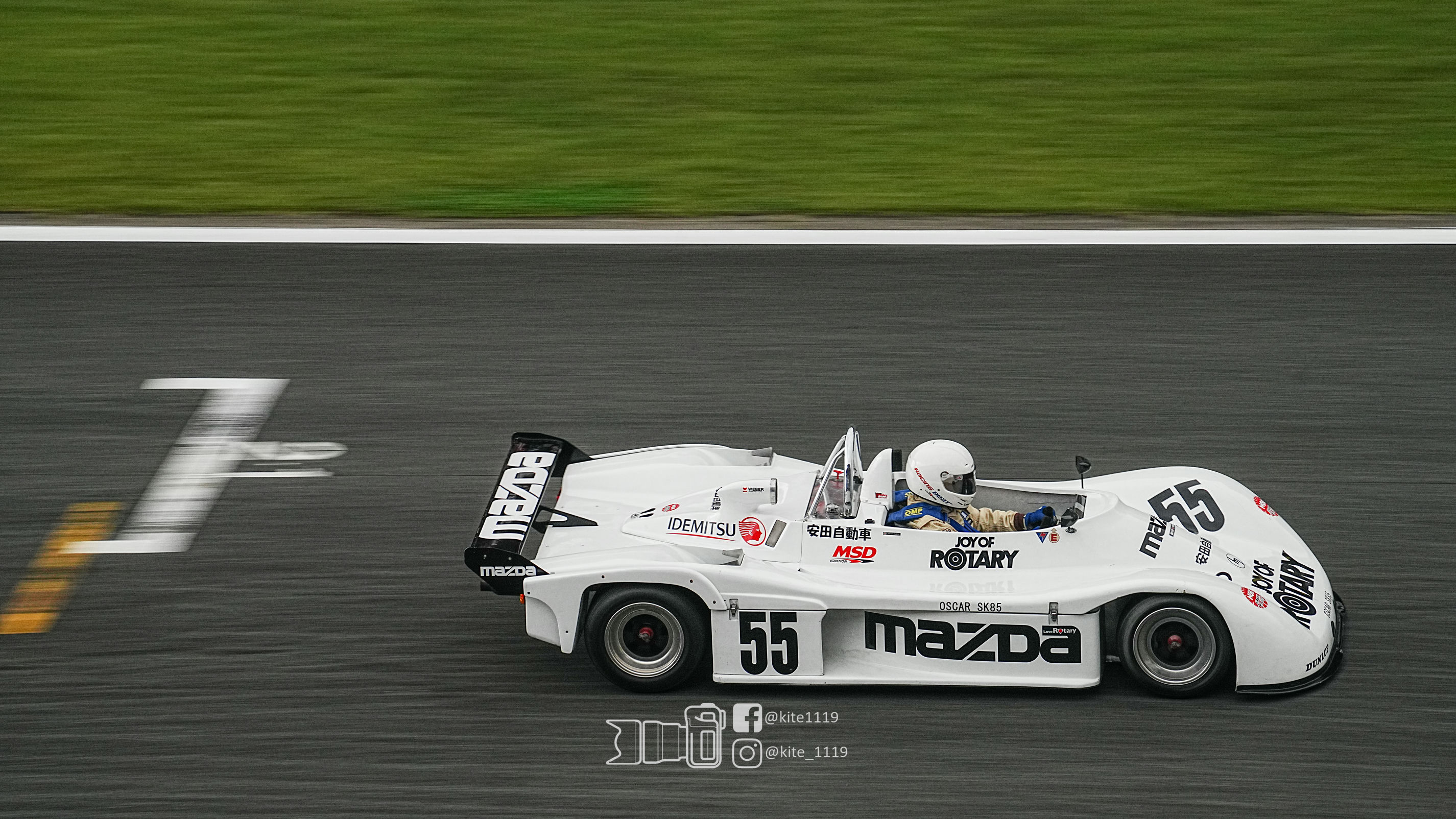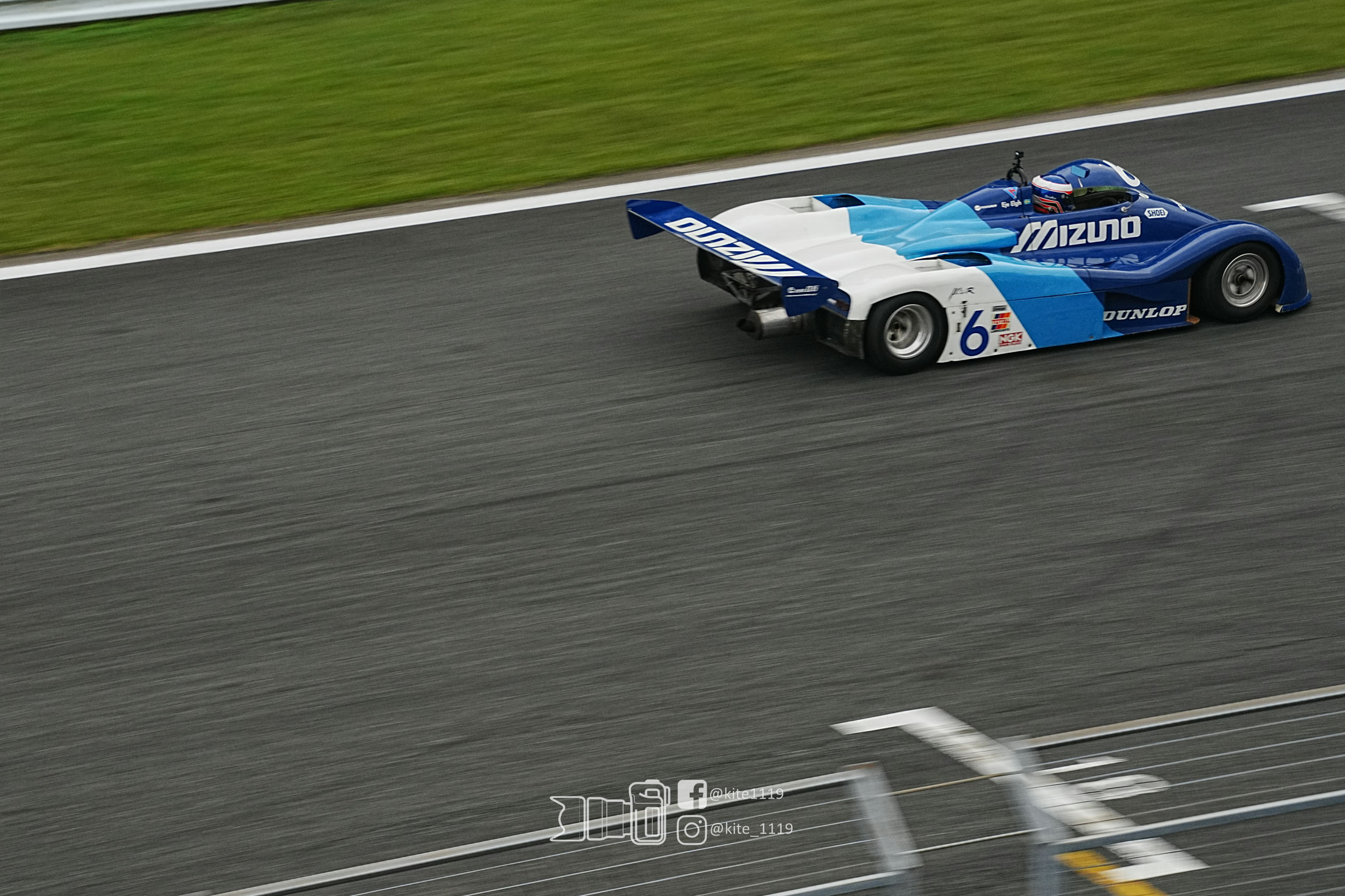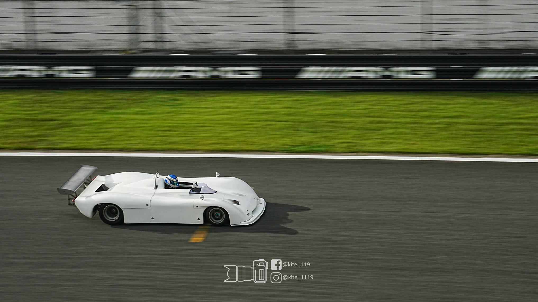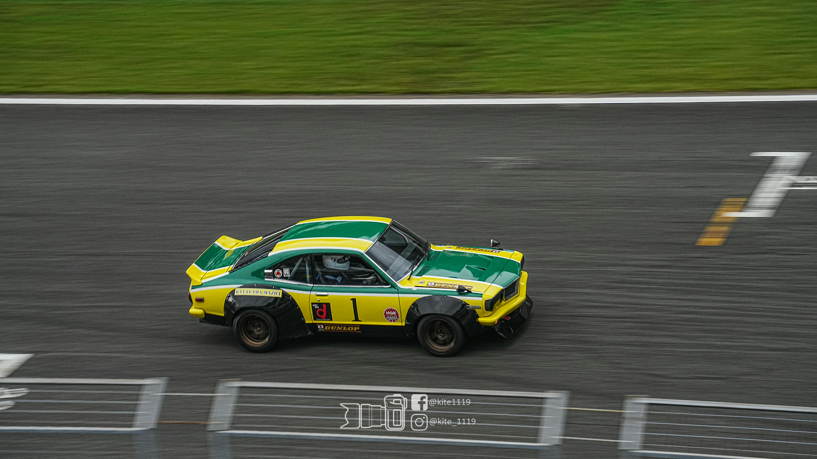 Mazda 787B在終點線的車速之快,拍了好幾次終於有一張稍微小糊的成功追焦照,另外再特別把照片的調色風格做懷舊感,有種像是看回憶紀錄片的感覺,整個心滿意足了。