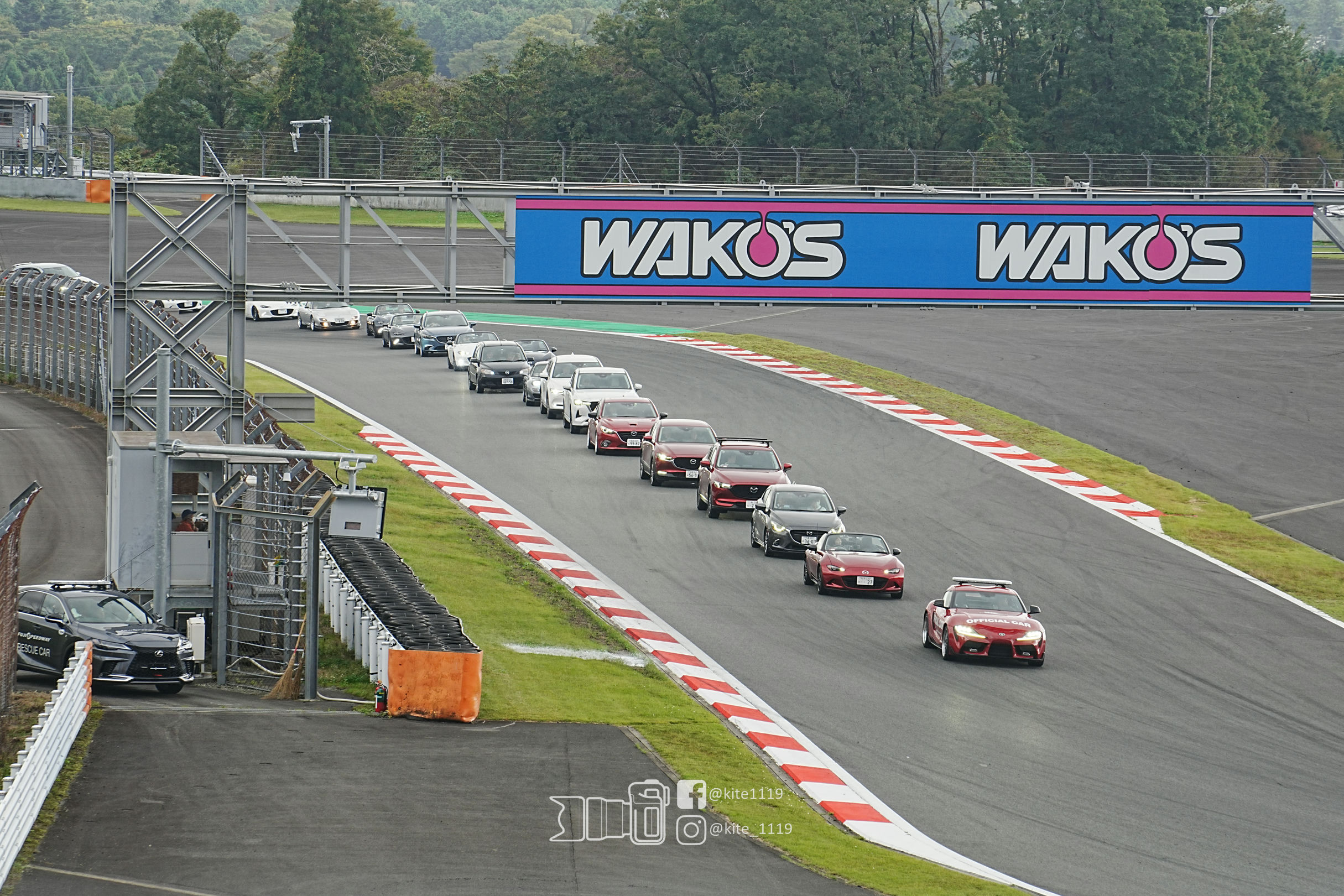 在活動最後看著富士國際賽車場的工作車帶領著馬自達各車主自駕環繞賽道,結束這一整天的自馬自達嘉年華盛事。