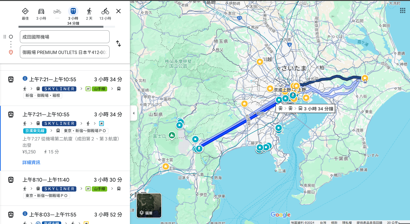 交通的部分則是採用Google Map的方式來規劃,整體算是相當方便。