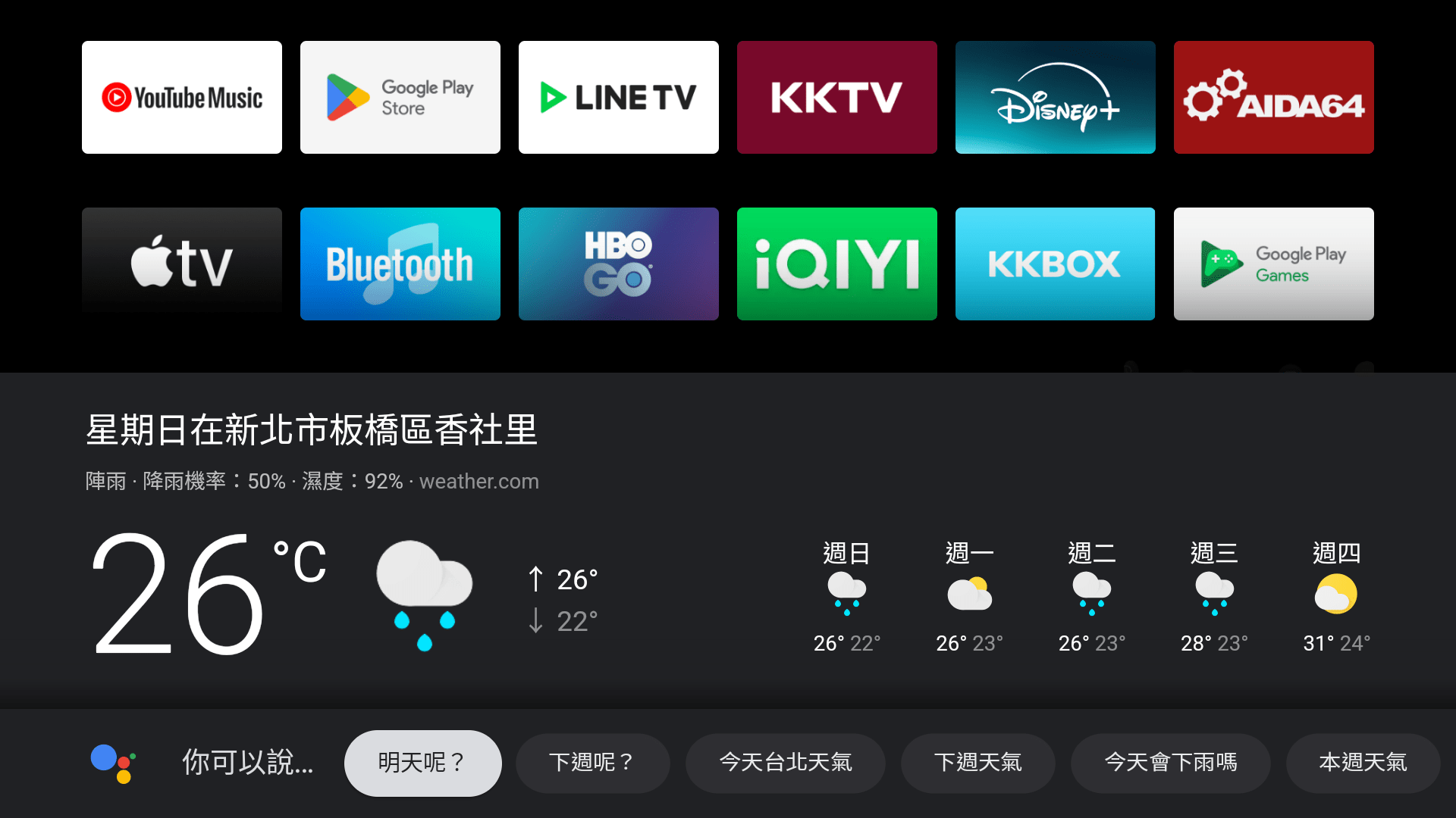 想問天氣如何?SoundBox 搖身一變成智慧電視盒,不用拿手機起也能查詢天氣超方便。
