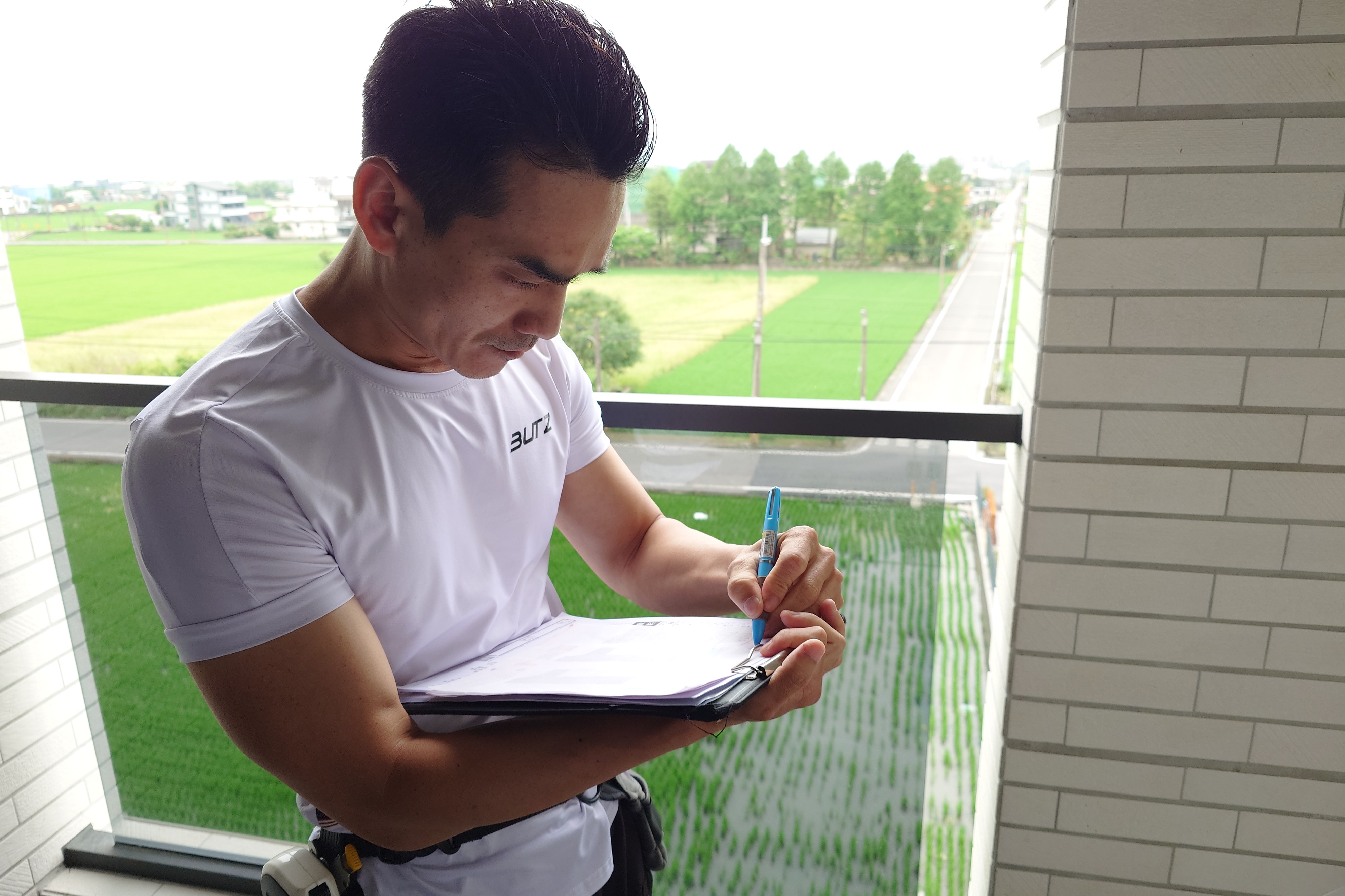 到了預約丈量的那天,師傅手腳俐落地快速丈量需要施工的區域,而過程中我也特別提問了一下對於防墜網的施工是否會被檢舉為違建的問題。