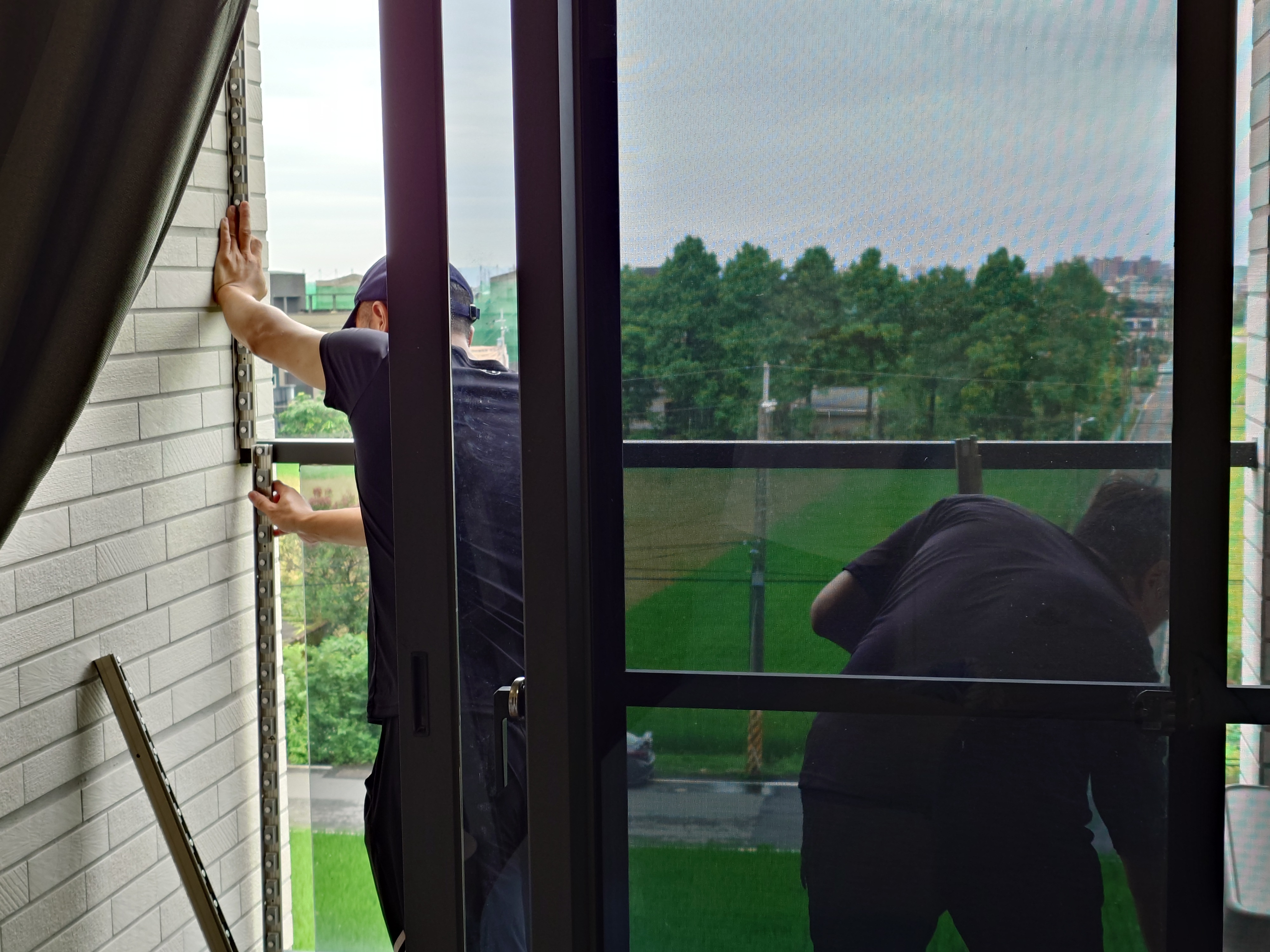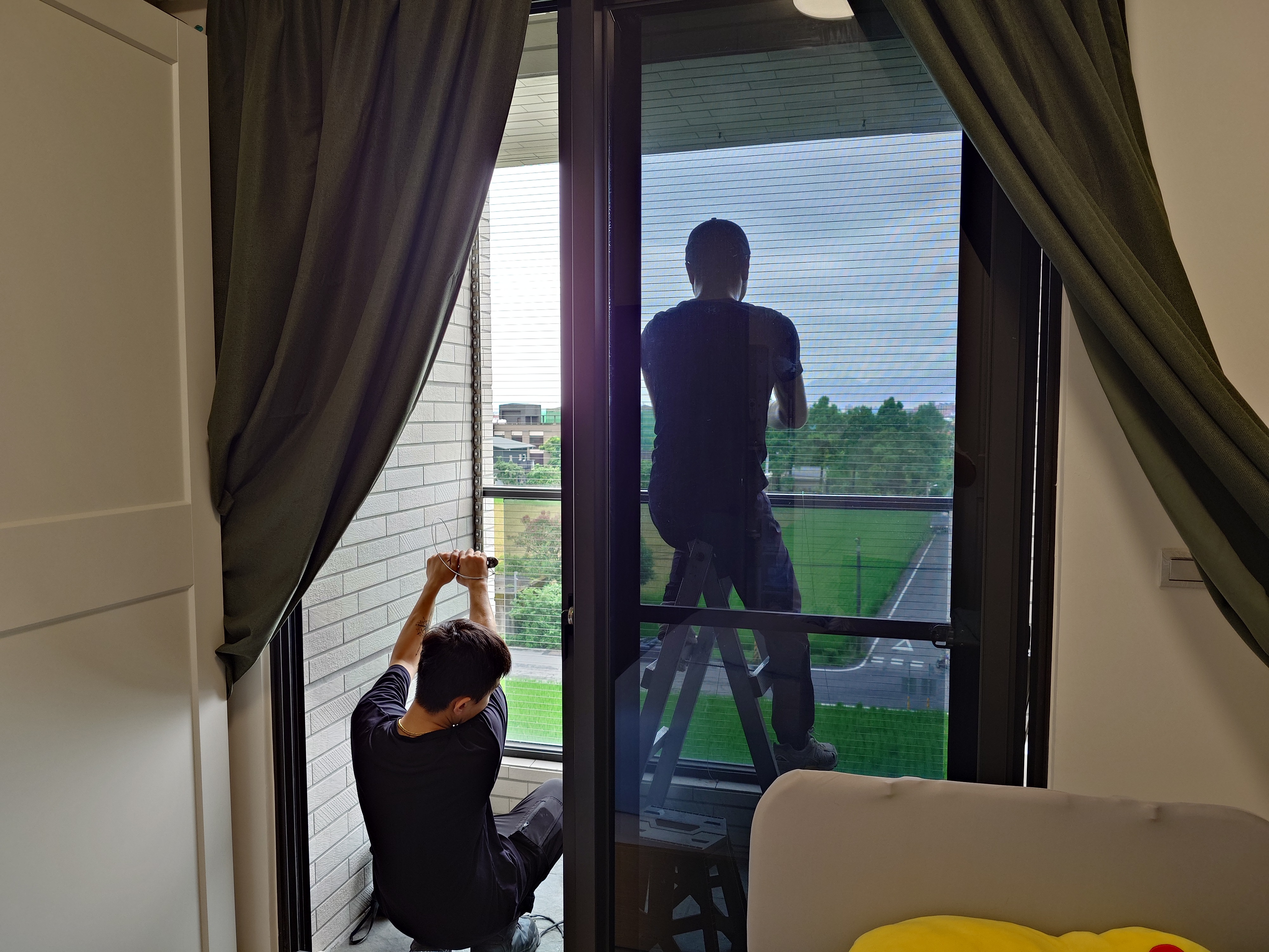 最後師傅在與我充分討論後,分享了美觀的全網施工方式與上面半網 +下面針對側面玻璃處加鋁網施工的省錢做法,感受的出來廠商算是很替客戶著想,感受還不錯。