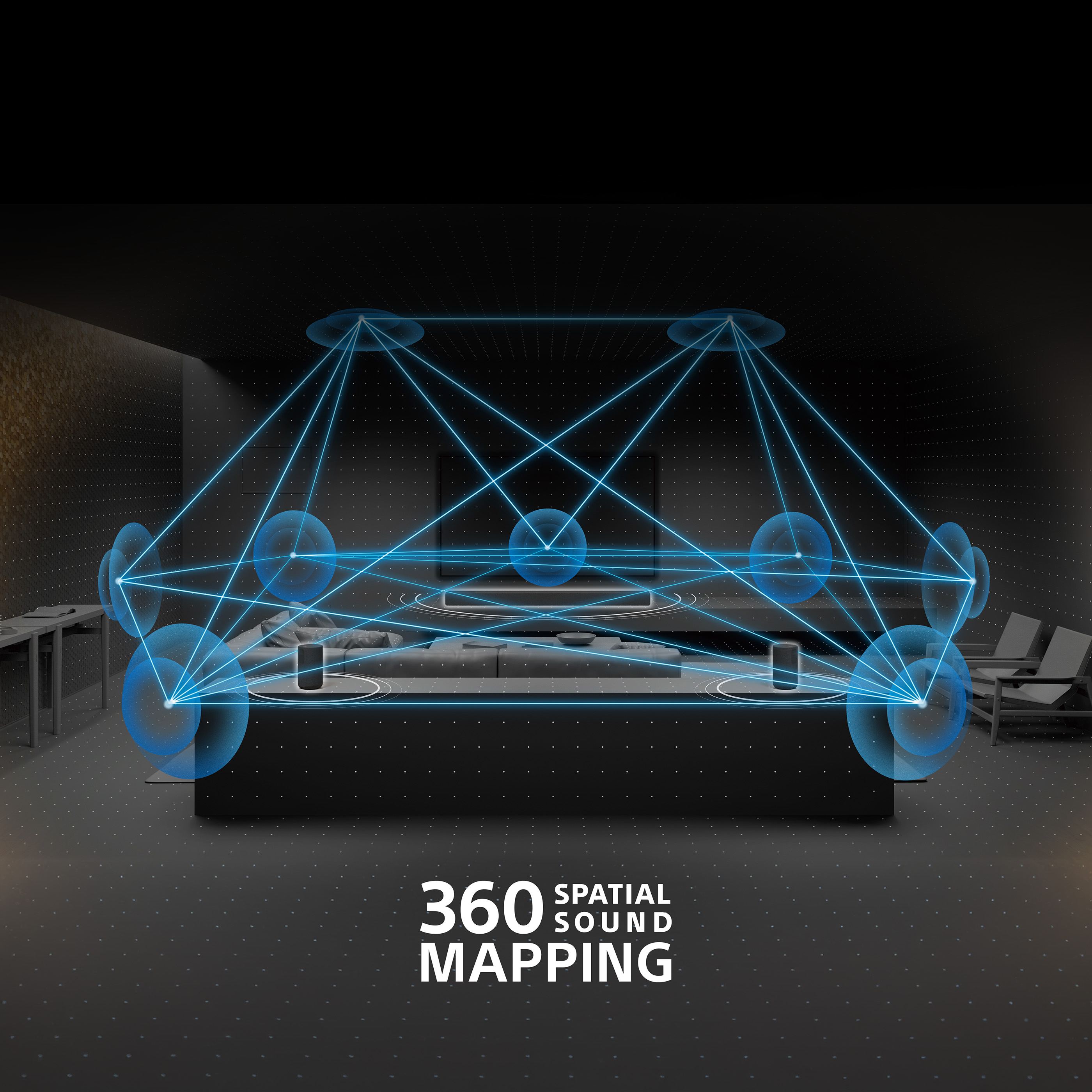 搭配Sony BRAVIA系列單件式揚聲器的 360 空間音效功能,即可在專屬空間營造多個幻影喇叭模擬影廳磅礡的環繞音效。