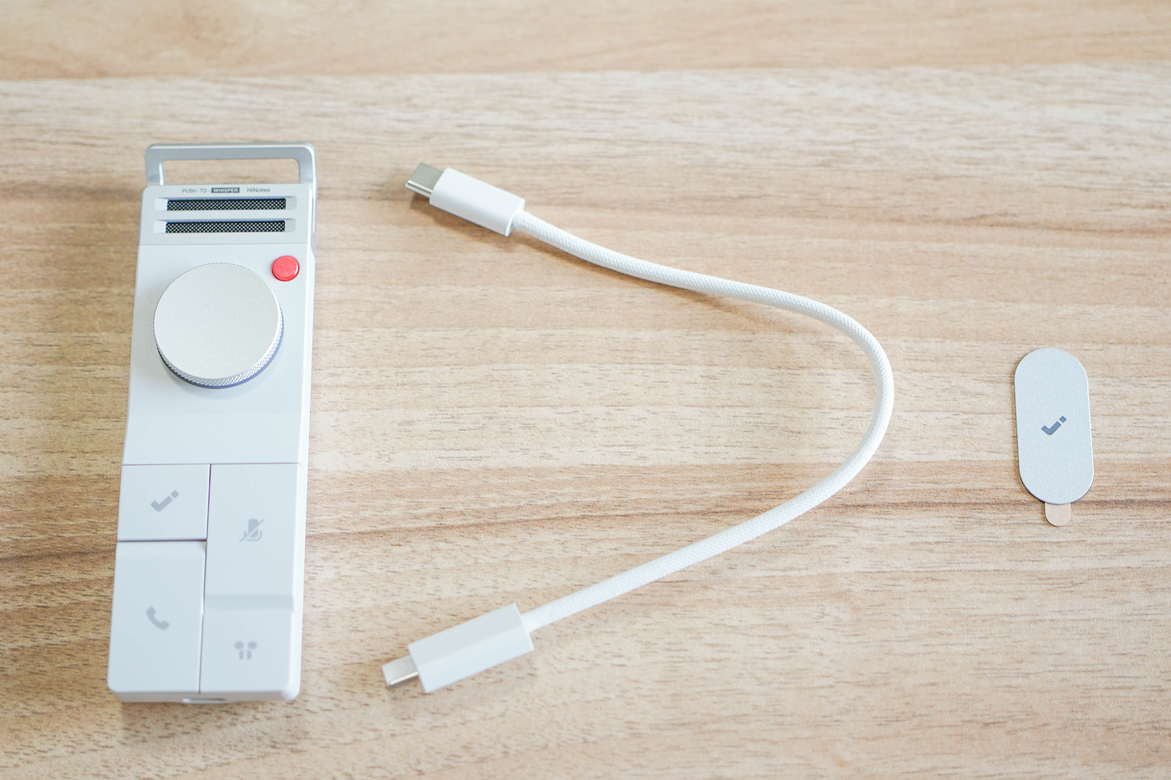 HiDock P1 有分黑色與白色兩種,這次凱叔拿到的是白色款。在產品包裝打開後,內容物會有 本體一台、C to C 磁吸傳輸線一條、磁力片一個。