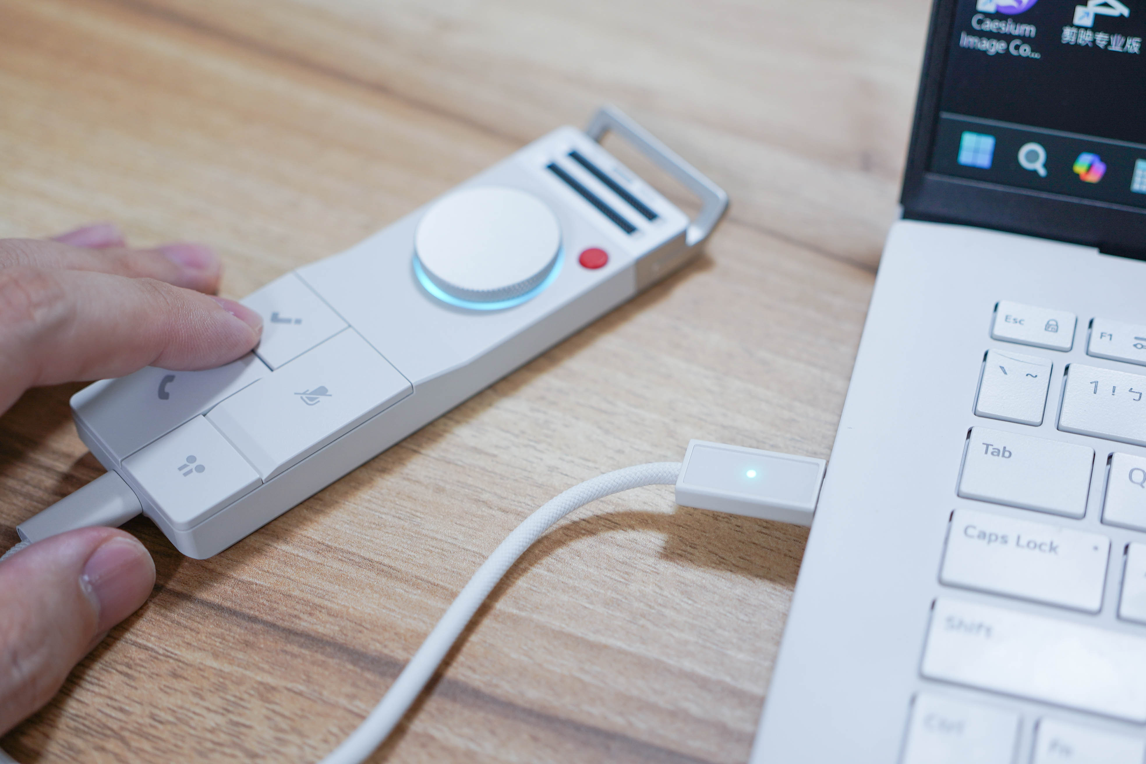HiDock P1 的會議記錄功能可用於 「實體」 與「線上」,需要特別注意的是在線上會議記錄使用需要用到盒裝所附的【C to C 磁吸傳輸線】,並且將【方頭有燈號那一端】插入電腦,線上會議音訊設備麥克風與揚聲器就會轉換 HiDock P1 進行收音。