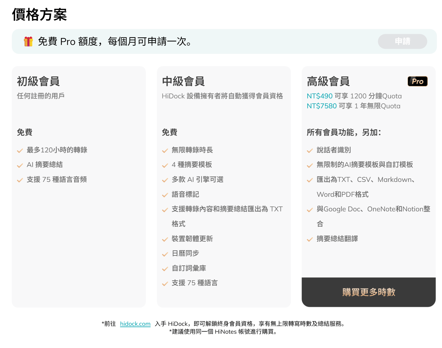 別於市面上許多類似產品,產品基礎功能並不是相當完全,多數重要功能還要訂閱才能用,這點來說HiDock還算相當佛心。