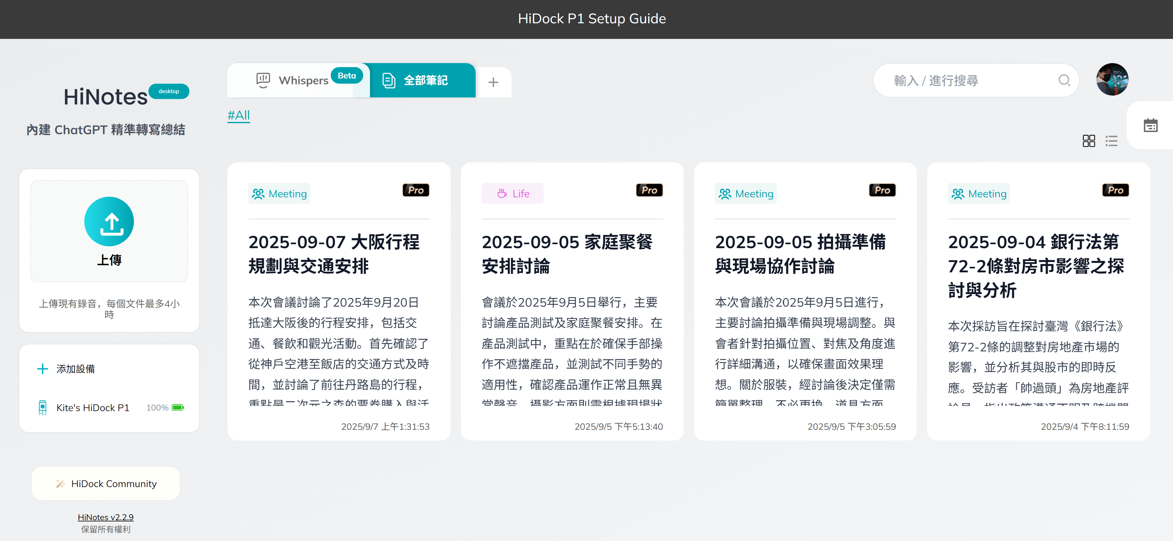 HiDock P1 錄音硬體設計不錯之外,它的軟體 HiNotes 也相當厲害,直接結合ChatGPT 及 ClaudeAI 的合作應用,而且支援 電腦網頁版本、智慧型手機版本【iOS】與【Android】版本。