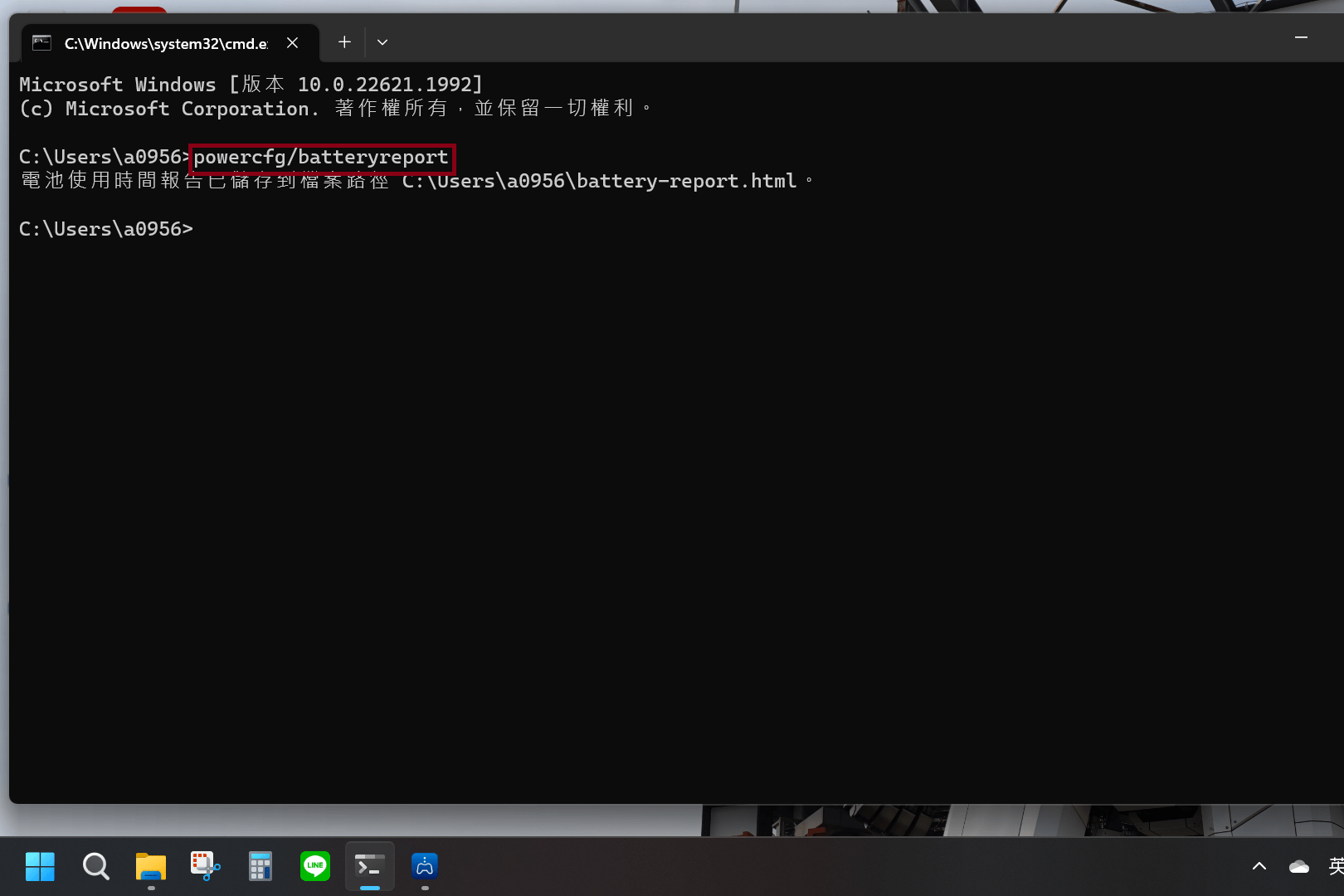 接著在命令提示字元裡面輸入 powercfg /batteryreport 按下Enter,接著電腦就會產生指令生成報告。